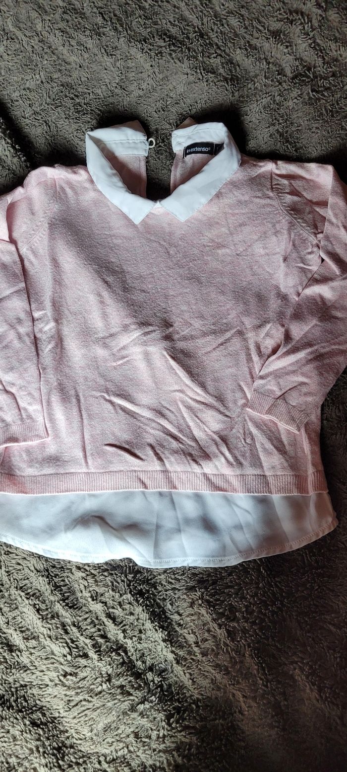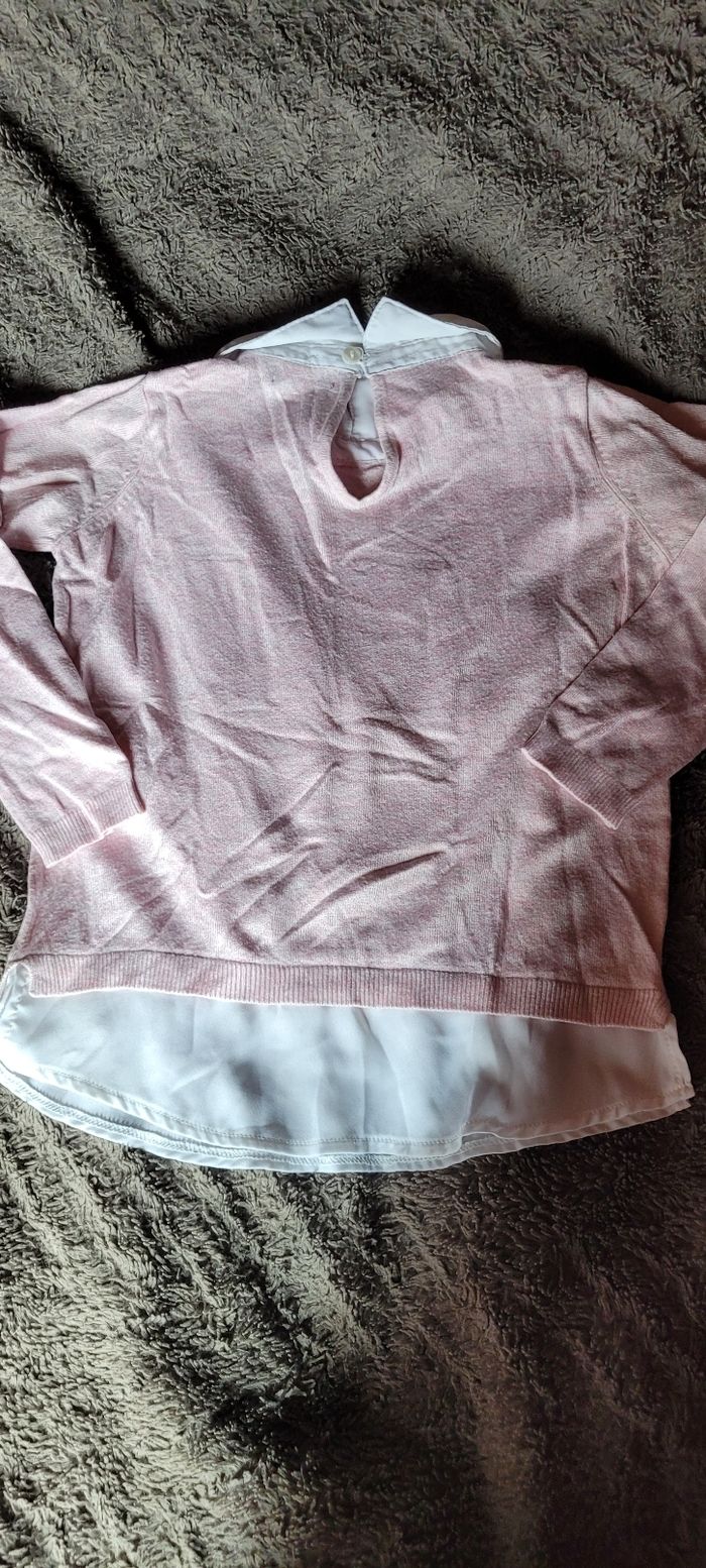Pull chemise Rose pâle et blanc 5 ans In extenso