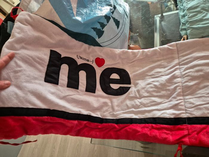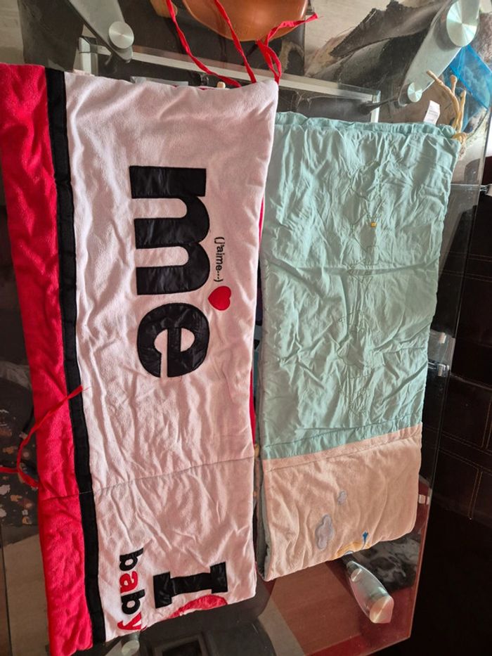 En lot ou à l'unité sur demande. 2 tour de lit très bon état peu servi laver avant la vente. Le rouge taille 1m74 marque les p’tits babies Le bleu taille 1m65 marque bengy.