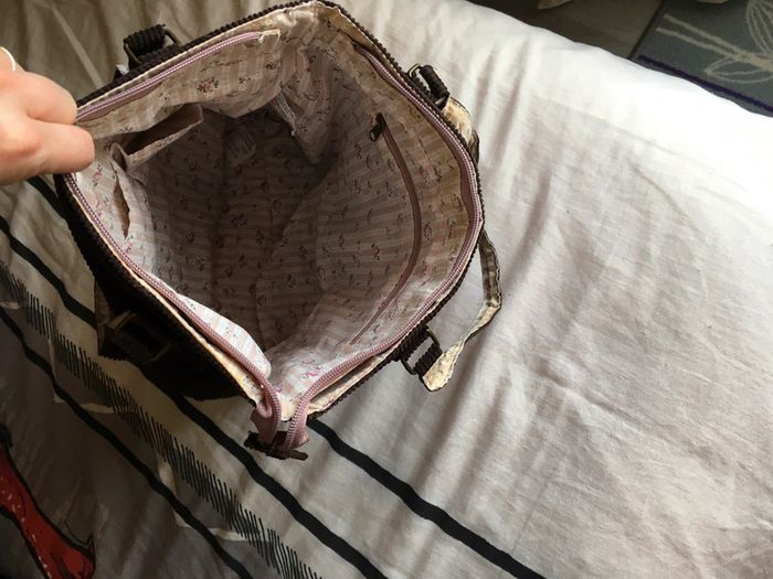 sac velours marron intérieur fleuri si vous souhaitez plus de photos ou d’infos n’hésitez pas !