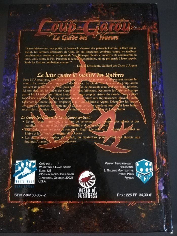 Loup-Garou Le Guide des Joueurs Complément avec Loup-Garou l'Apocalypse Hexagonal Édition 2000 ISBN 2-84188-067-2 JDR Jeu de rôle