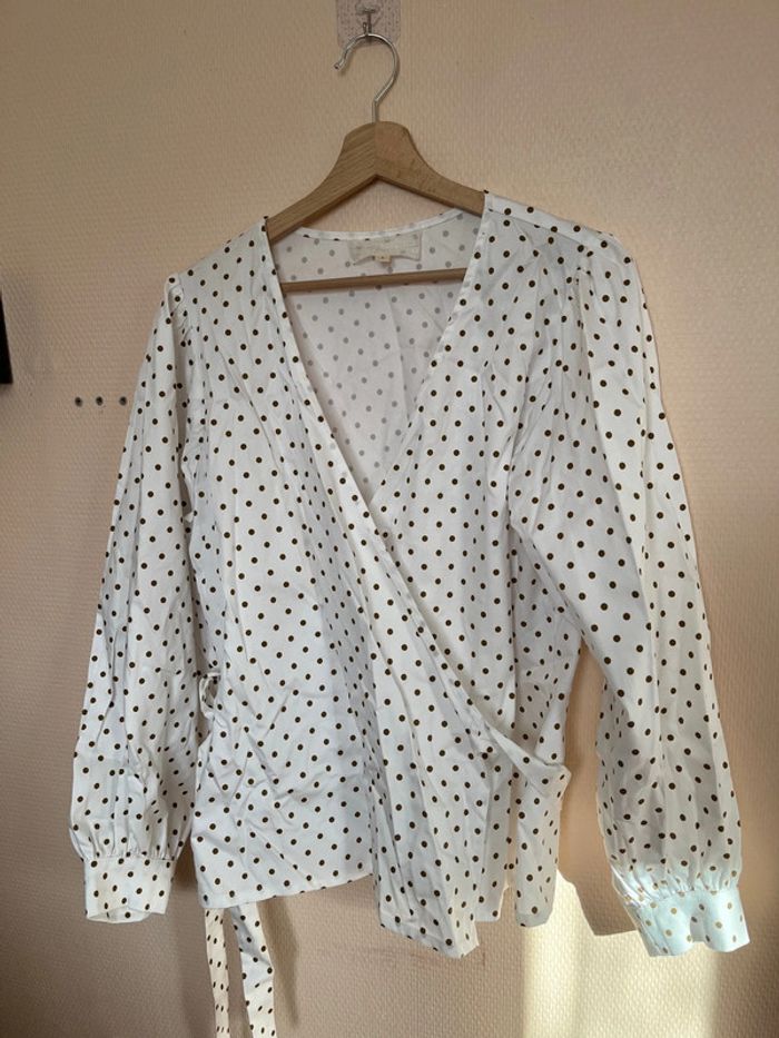 Blouse Laly armuré de coton pois écureuil - Taille L - photo numéro 1