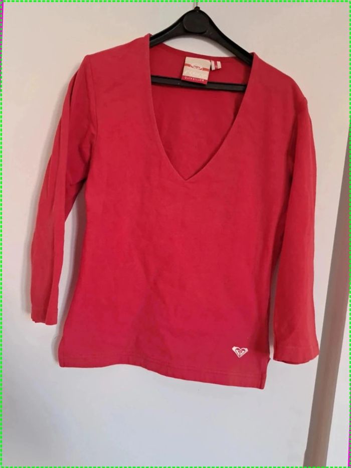 Joli tee shirt épais col V Roxy Quicksilver rouge. Taille 4 je dirai un S. Bon état.