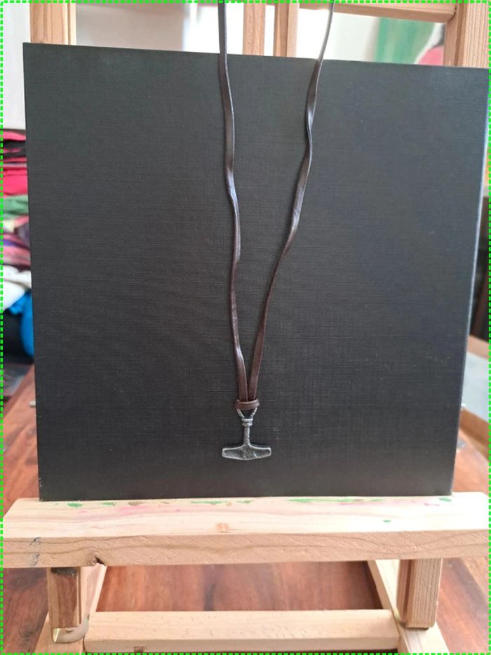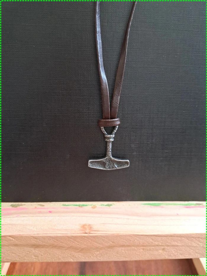 Pendentif marteau de Thor simili cuir marron ajustable style Nordique - photo numéro 1