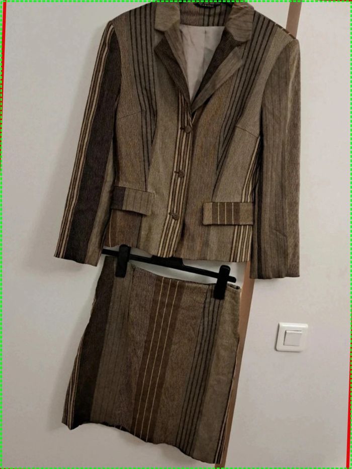 Ensemble veste élégante + jupe taille 38 Marque Caroll. Très doux au toucher, je ne fais payer que le blazer/veste car la jupe est bien mais elle a été retouché pour faire un ourlet. Donc je la fait cadeau pour avoir l'ensemble assorti.