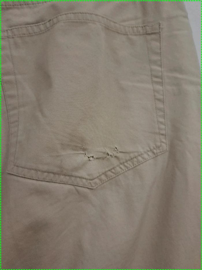 Pantalon Calvin Klein crème taille 44, quelques taches derrière voir photos et quelques petits trous sur les 2 poches arrières. Le prix est adapté.