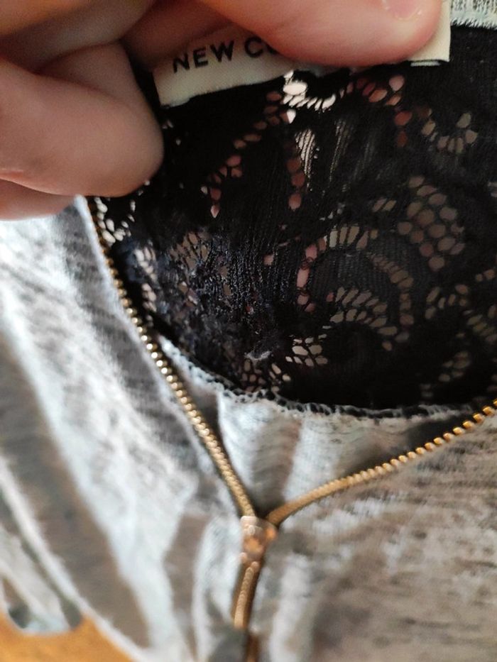 Beau petit haut gris avec un peu de dentelle