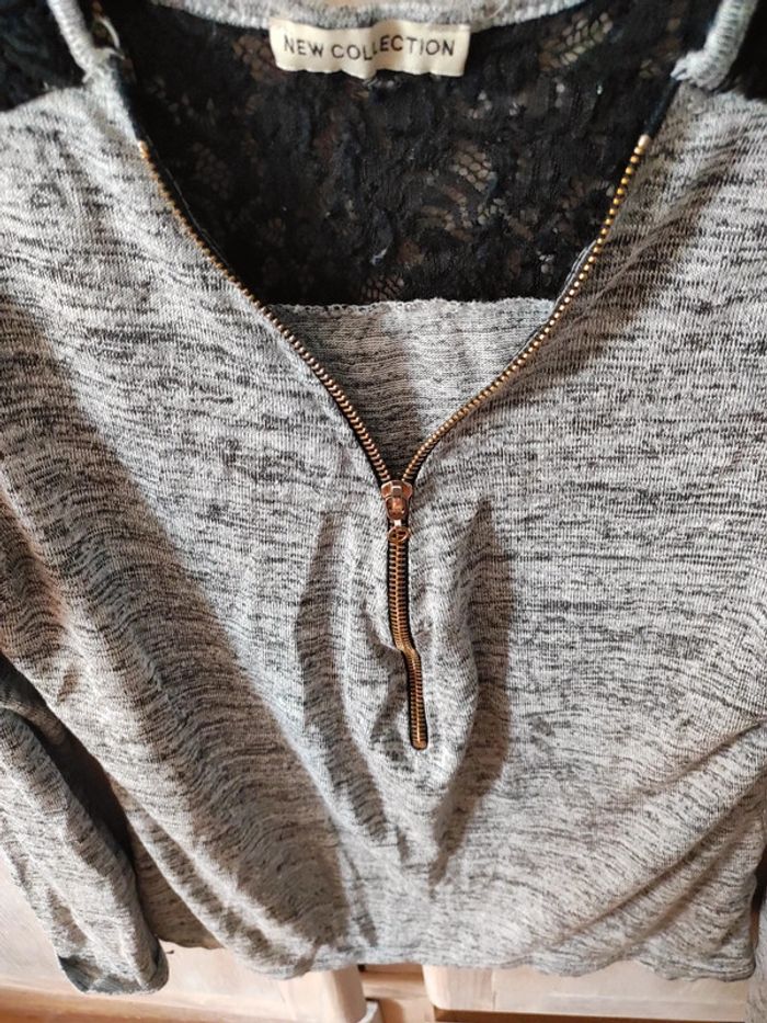 Beau petit  haut gris avec un peu de dentelle - photo numéro 1