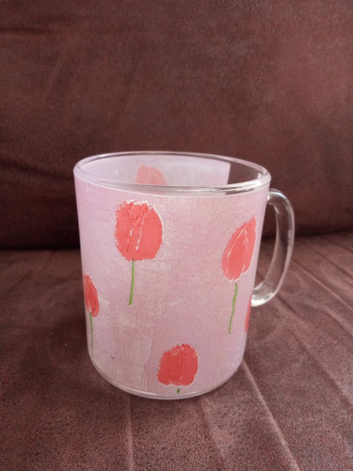 MUG en verre motifs Tulipes - En parfait état - photo numéro 1