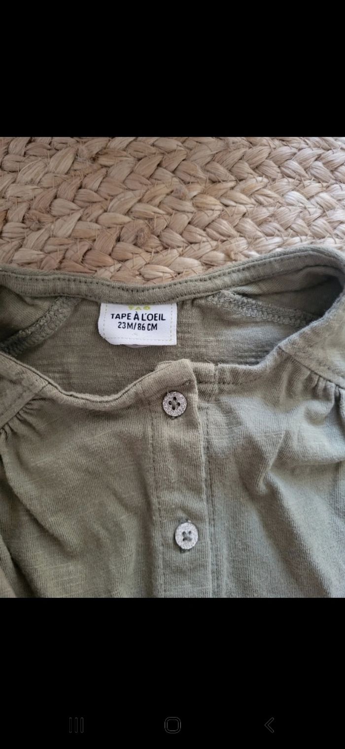 Combi short tape à l'œil. Pression entre jambes. Portée plusieurs fois mais encore très bon état, pas de taches, pas de trous. 23 mois. 86cm