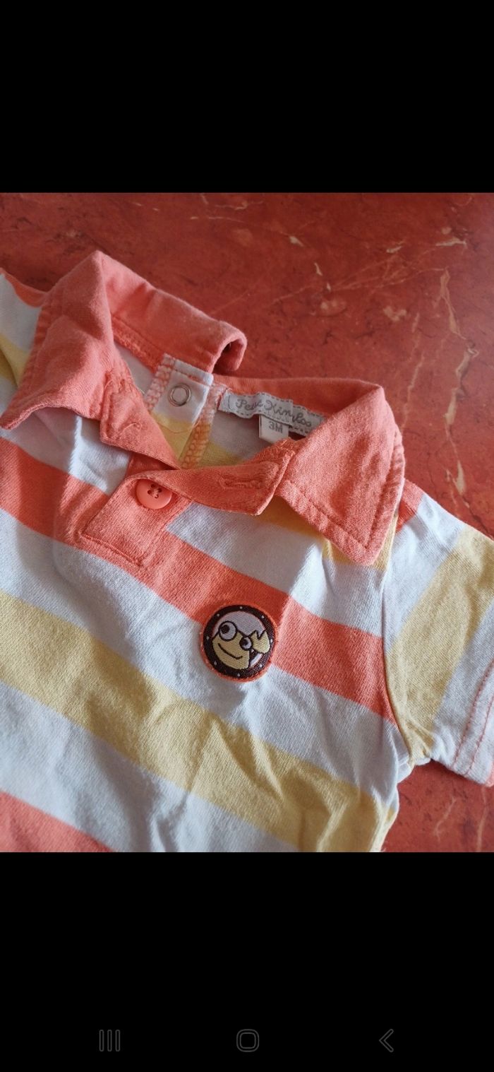 Polo manches courtes à rayures. Tissu usé par les lavages