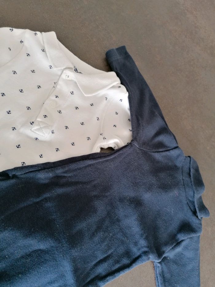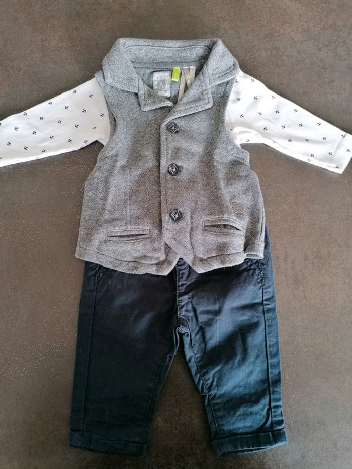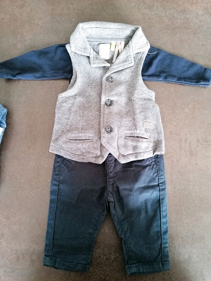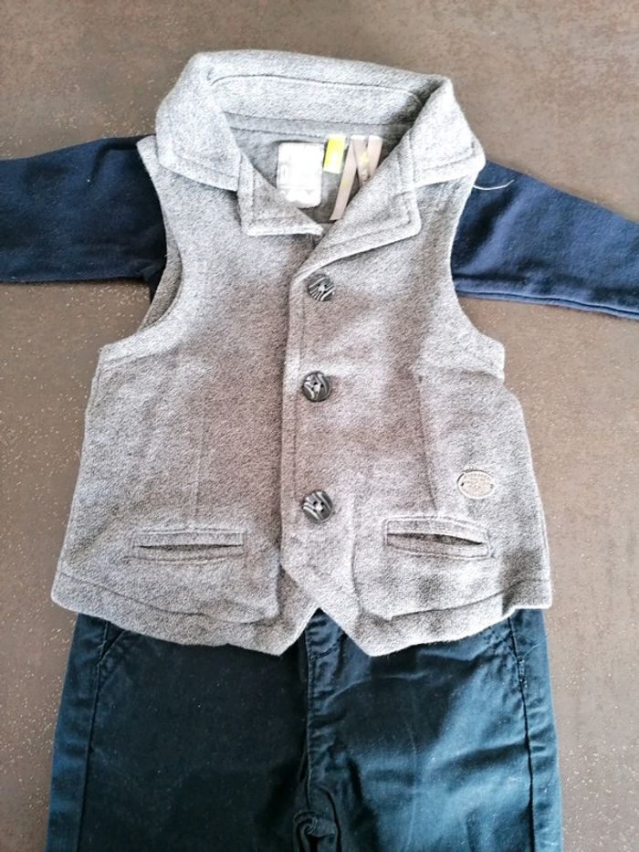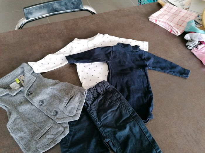 2 bodies petits bâteau 1 pantalon marine kiabi et un gilet sans manche orchestra état impeccable