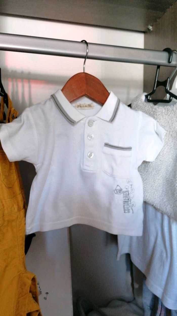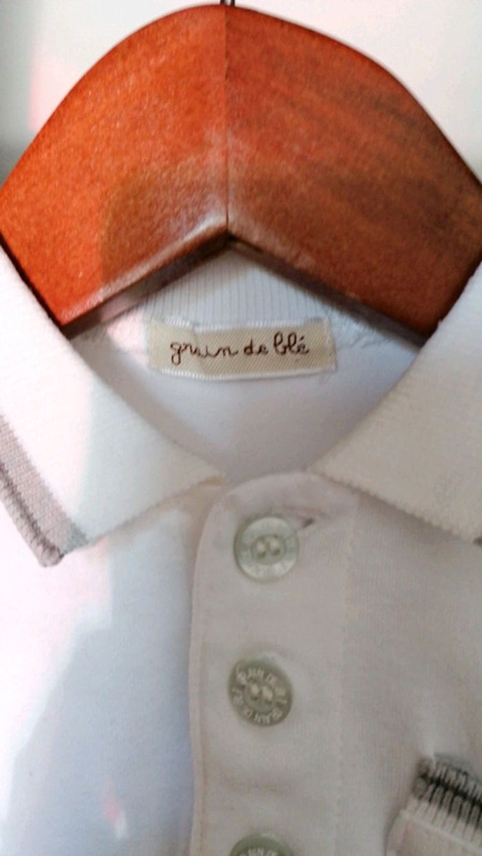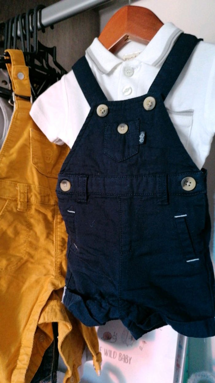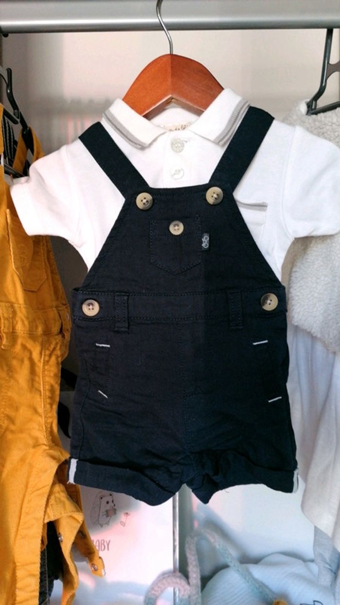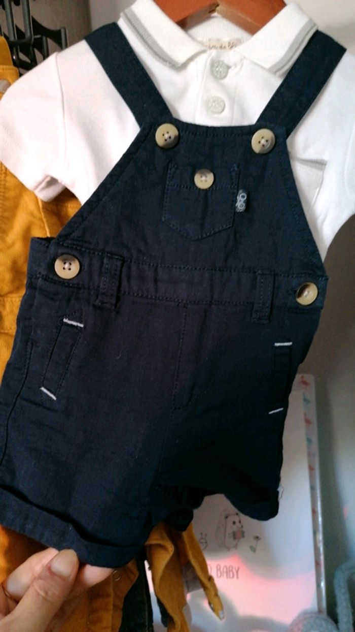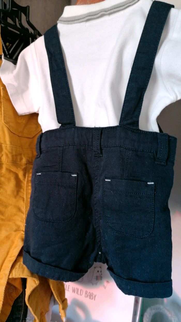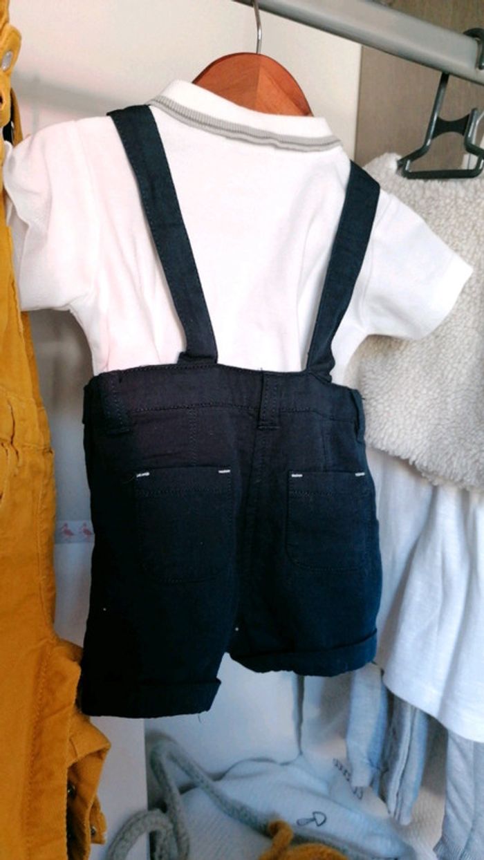 Superbe ensemble porté 1 fois combi short kiabi bleue marine et petit polo blanc grain de blé une adorable tenue