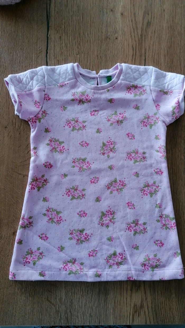 État impeccables 24 mois -1 robe rose benetton -1 robe velour grise gémo -1 robe boule sans marque