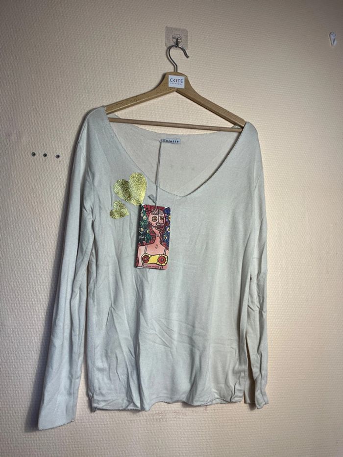 Pull beige à cœurs dorés - Taille Unique - photo numéro 1