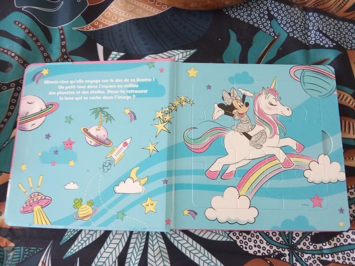 Livre contenant 5 puzzles de 9 pièces chacun sur le thème Disney licorne. 1 autre identique également à vendre De nombreux autres livres puzzles différents thèmes. Également à vendre une veilleuse licorne et réduction activée