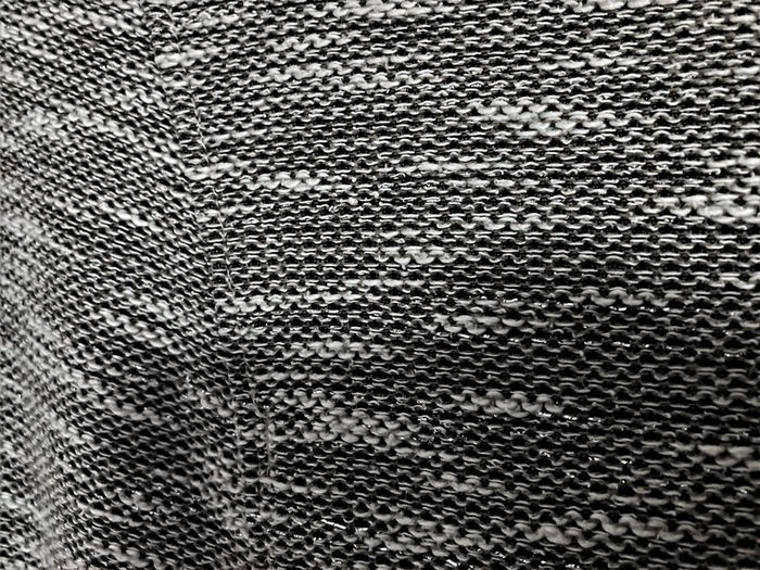 Marque "Cache-cache", toile gris chiné et fils argentés, lisérés simili cuir noir. Tour de poitrine 84 cm, longueur 58 cm, 100% synthétique.