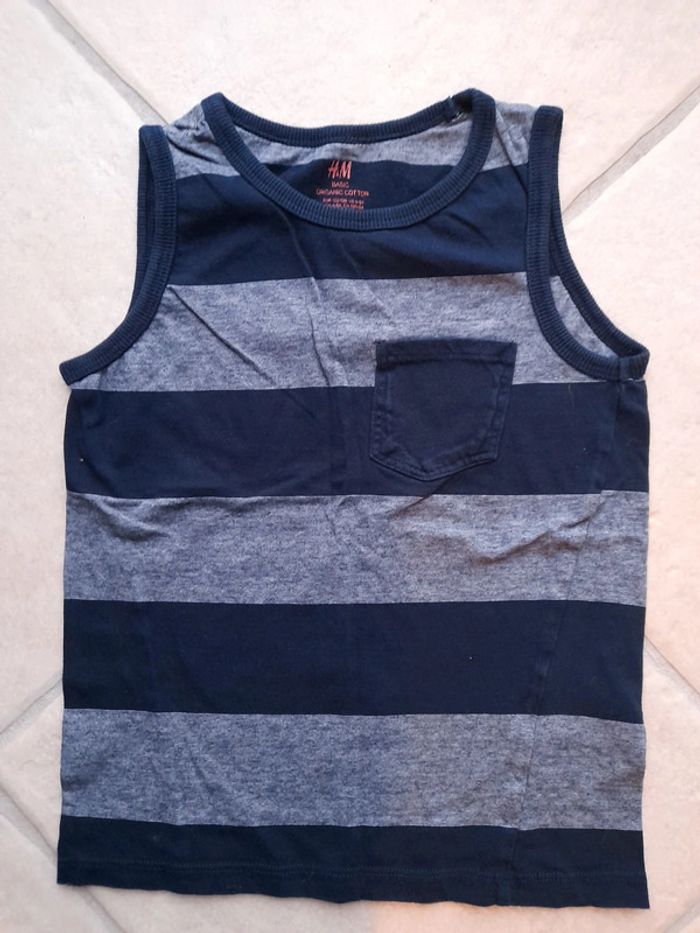 Débardeur sans manche rayé bleu et blanc (taille grand)