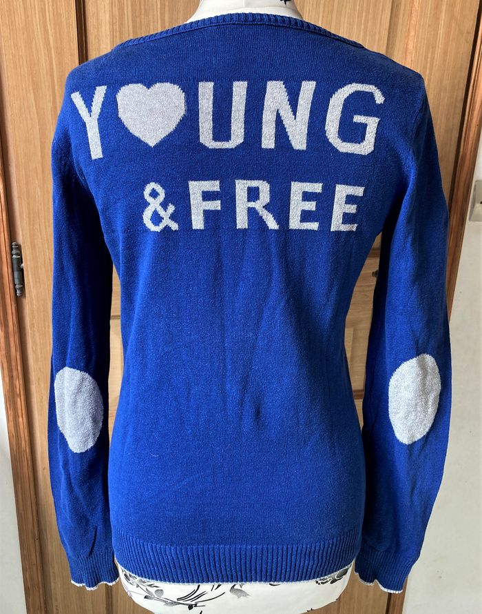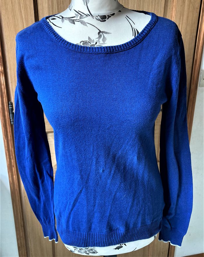 Pull bleu roi liséré gris argenté taille 42/44 - photo numéro 4