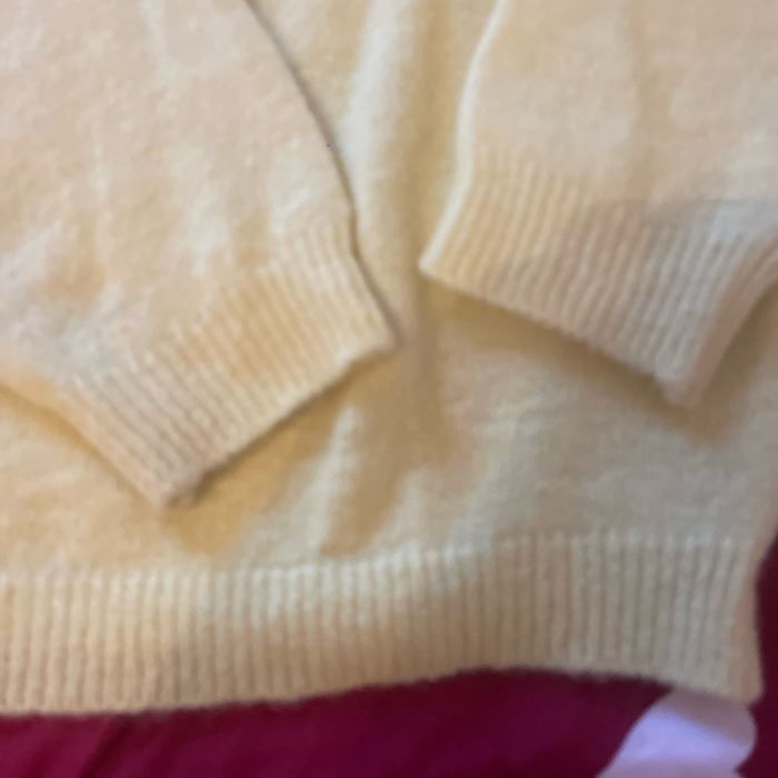 Pull jaune dont la couleur est ,en réalité plus vive. Neuf car jamais porté.etat impeccable .