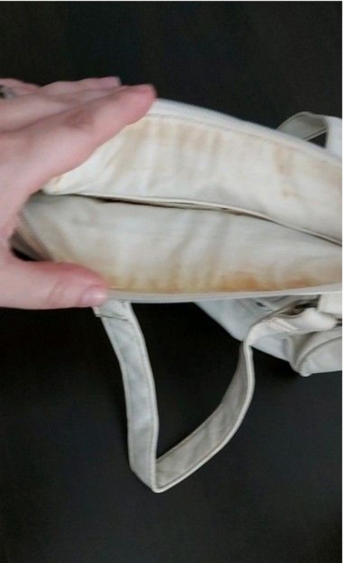 Sac à main blanc cassé, légèrement tâché à l'intérieur (voir photo)