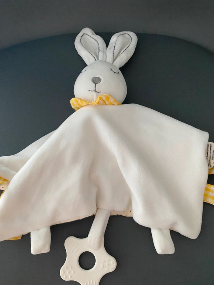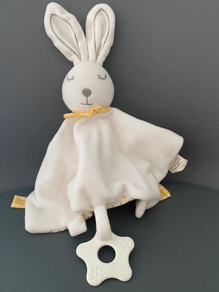 Superbe doudou neuf , dans emballage . Il n’y avait pas d’étiquette Lapin avec anneau de dentition N’hésitez pas à faire un panier avec plusieurs articles pour économiser les frais de livraison #titia31accessoiresbebe