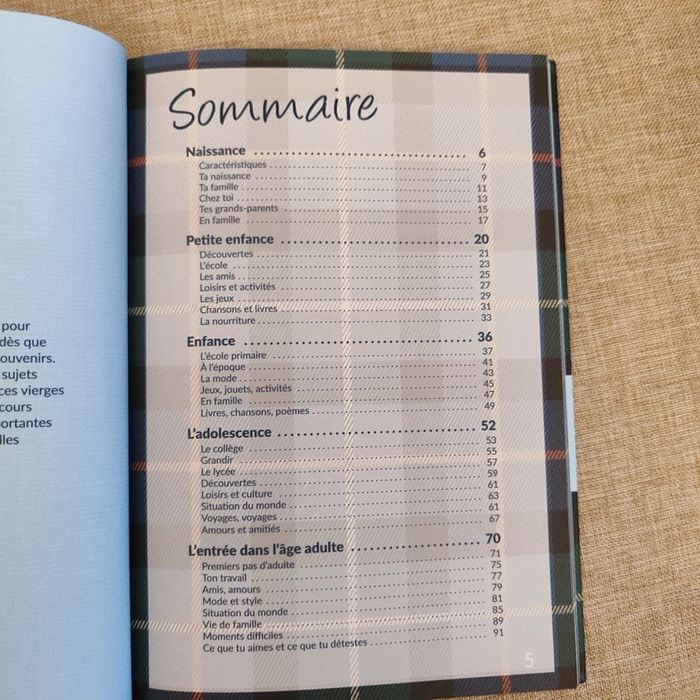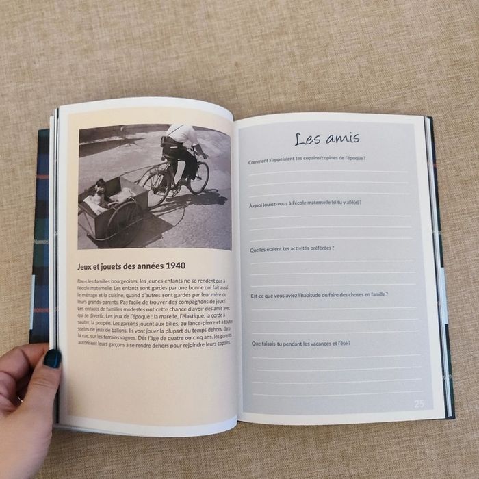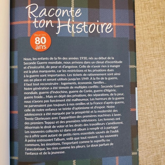 Neuf, petite trace au dos cf photo Ces albums vous invitent à raconter votre histoire en partageant vos souvenirs d'enfance. Des séries de questions vous guideront afin d'évoquer vos premières années et les événements qui ont forgé votre personne. Elles vous permettront de vous remémorer ces instants uniques de votre vie, de les fixer dans le temps, de partager avec votre entourage souvenirs et anecdotes. Agrémentés de textes concernant l'époque, d'encadrés thématiques sur l'histoire de votre génération, ces ouvrages vous documenteront également sur ce qui a marqué votre temps.