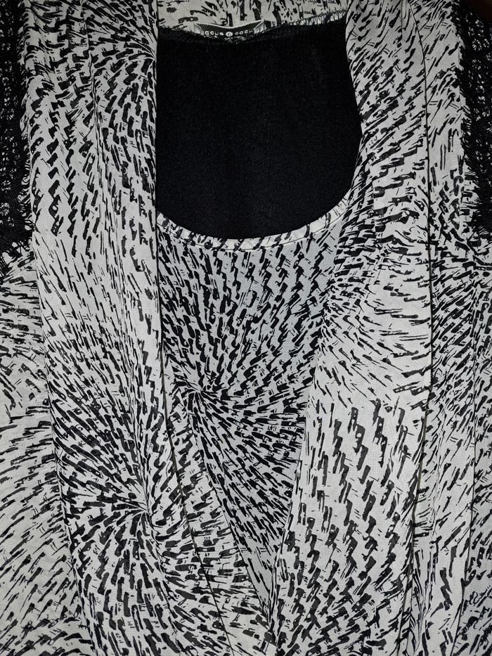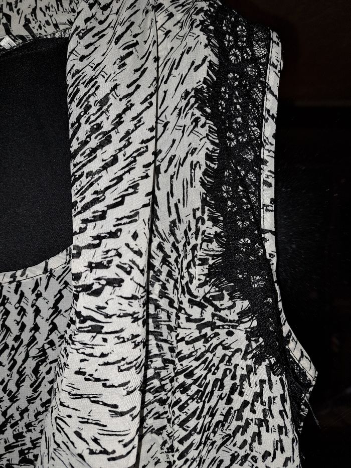 Robe femme Marque Cache Cache Taille 42 Couleur noire et blanc Dentelle aux manches et à la taille Courte Élastique Sans manches État impeccable
