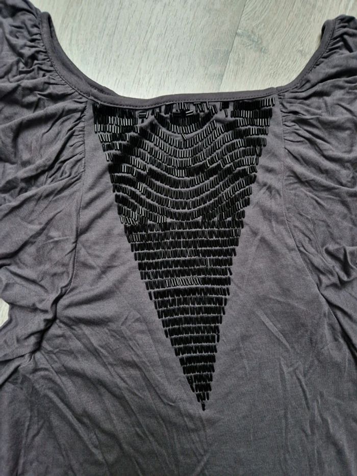 Top gris Promod avec perles noires étiquette de taille coupée mais convient à un XS - photo numéro 5
