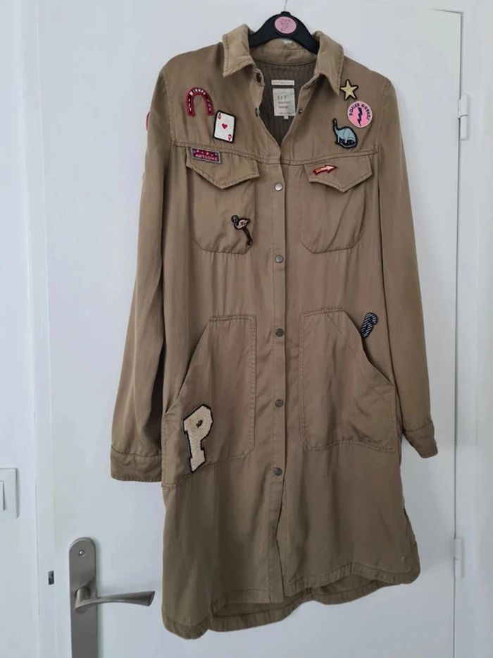 Chemise très longue à pression Zara XS kaki neuve XS - photo numéro 1