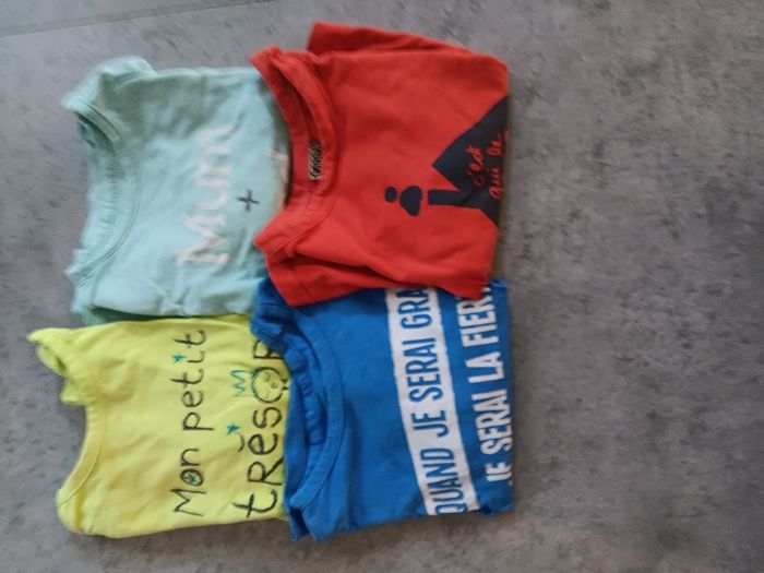 4 pantalons kiabi 1 tape à l'œil 2 shorts 1 barboteuse winnie 1 polo blanc et 1 turquoise. 1 tee shirt dessin requin manches courtes 4 tee-shirt manche longue kiabi offert 4 shorts 30€ le lot