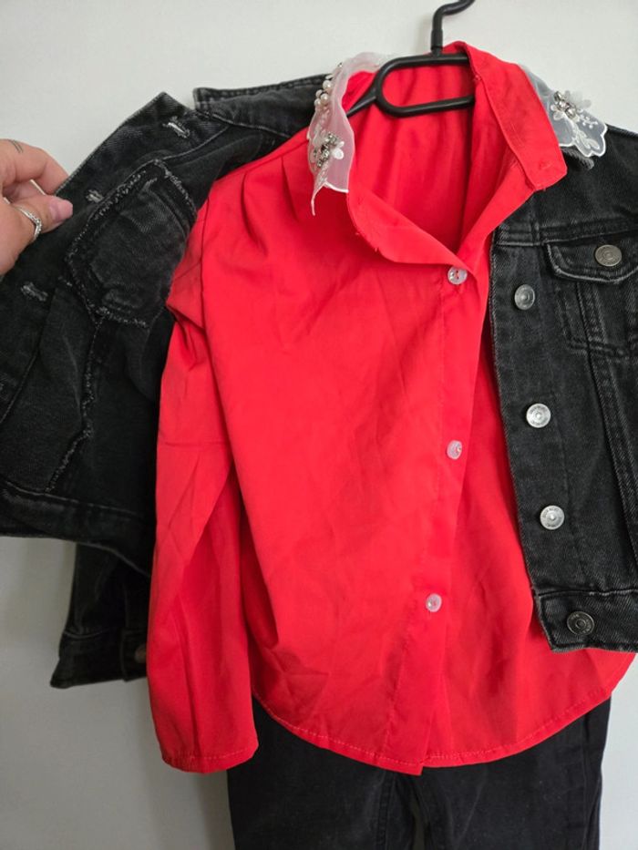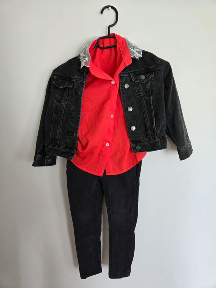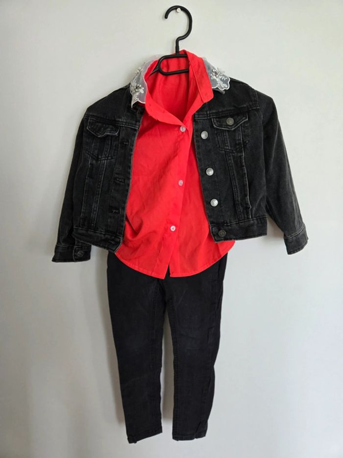 Ensemble jean la halle 5 ans neuf chemise jolie angel 4 ans neuve ( taille 5 ans) veste en jean kiabi 5 ans neuve Tout lensemble va pour un 5 ans et l'ensemble est neuf