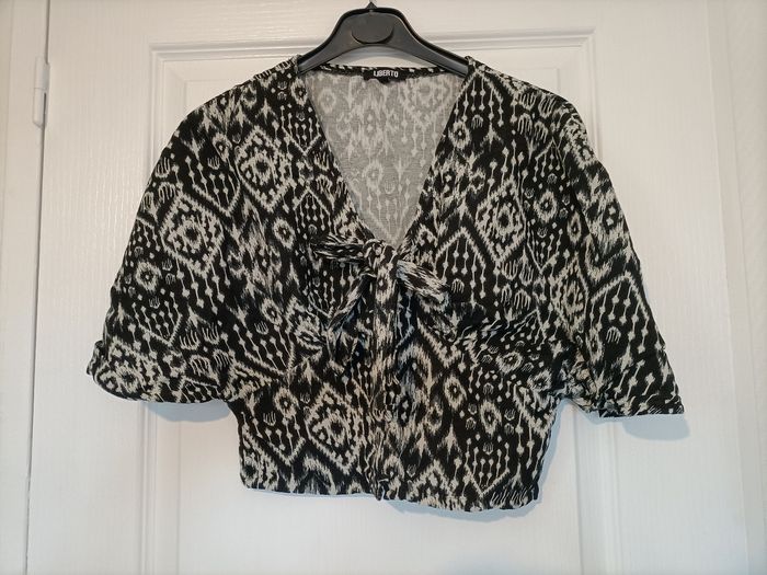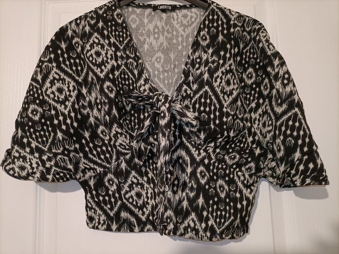 Blouse imprimée manches bouffantes neuve 34 liberto noire et blanche - photo numéro 1