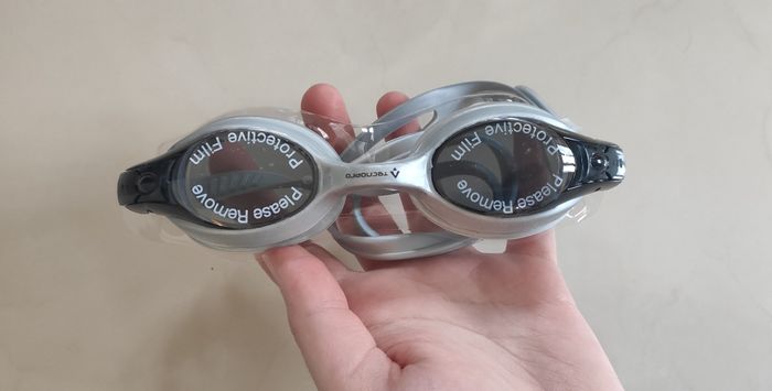 Lunettes de plongée neuves sous emballage. Le film protecteur est encore sur les lunettes 😊