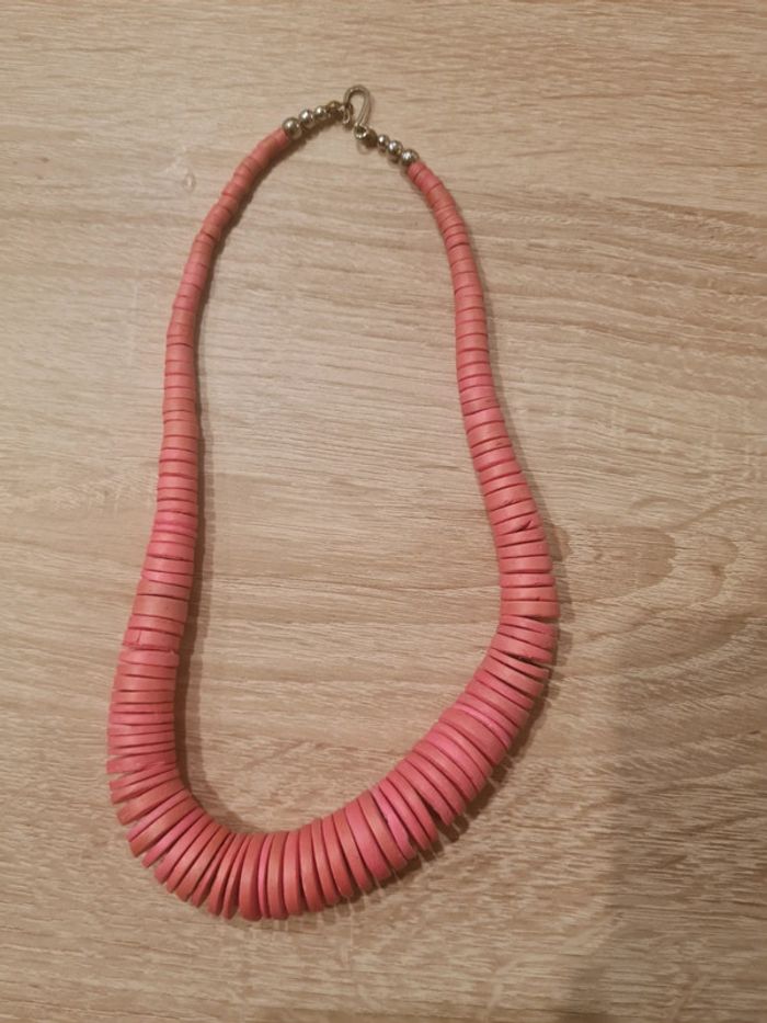 Collier perles plates en bois rose Vintage 70 - photo numéro 1