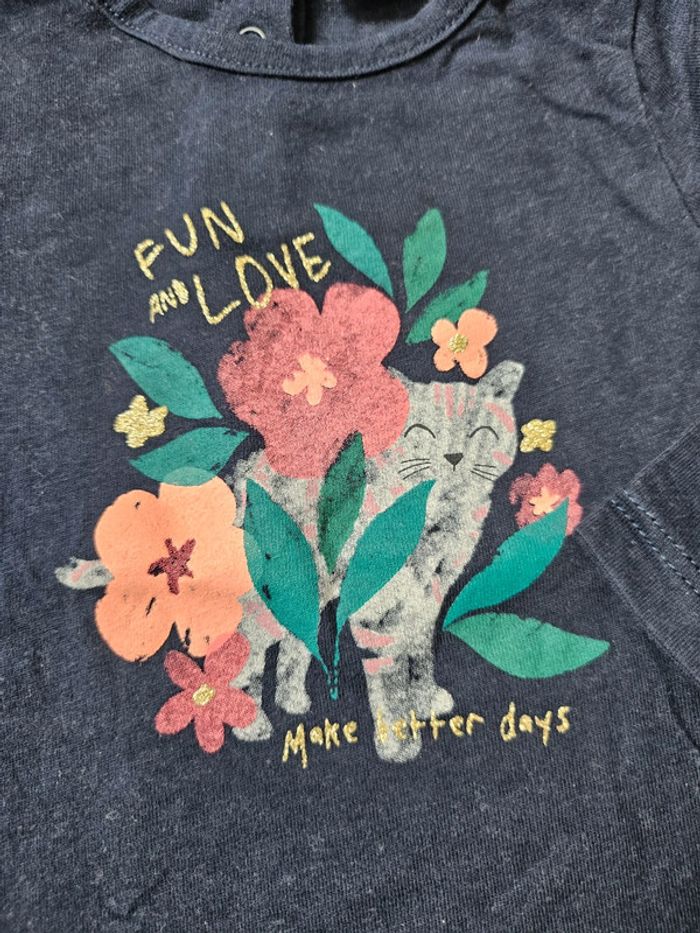 T-shirt manches longues TAO fille 12 mois. Motif animal, fleuri et écriture dorée. Excellent état, pas de tâche ni de trou. Créez un lot pour profiter des réductions 😉 #aurele776fille12mois #printemps #misaison #jungle #fleurs #fun #love