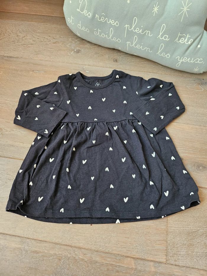 Robe manches longues fille 12 mois. Motif cœurs. Excellent état. Pas de tâche ni de trou. Idéal pour la mi-saison. Créez un lot pour profiter des réductions 😉 #aurele776fille12mois #printemps #misaison #coeur