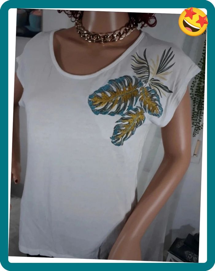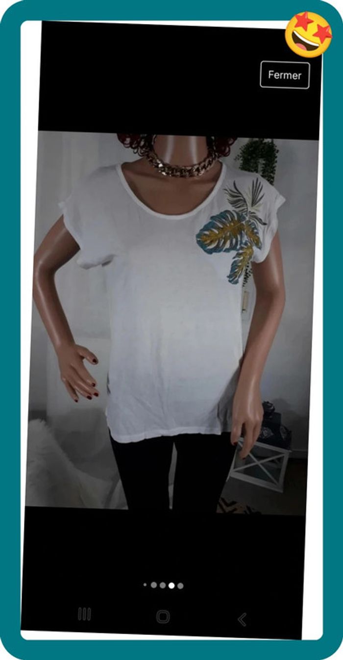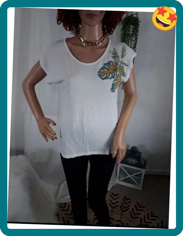📌Compte Pro:  Si vous voulez un lot contacter moi😉 ♦️-10% pour 2 Articles ♦️-20% pour 3 Articles 🌼 Tee-shirt pour l'été avec imprimé, manches courte, en très bon état ❤️Plusieurs Articles de la même catégorie sur mon dressing➡️ #mayevêtemntfemme ⚠️Important : Il n'y a pas la touche pour créer les LOTS car vous êtes sur un compte Vinted Pro, Ça sera donc à moi de vous le faire manuellement. Si vous désirez acheter en lot, merci de me contacter en privé via la photo ou screen des Articles intéressés.. 📥 Envoie Rapide et Soigné des colis, Tous les jours, Sous 24/48h maximum🚀 🚚 Envoie sur tous les points Relais ⚠️Vêtements sans défaut particulier 🚭 Maison non-fumeur 🎁 Cadeaux offert si possible