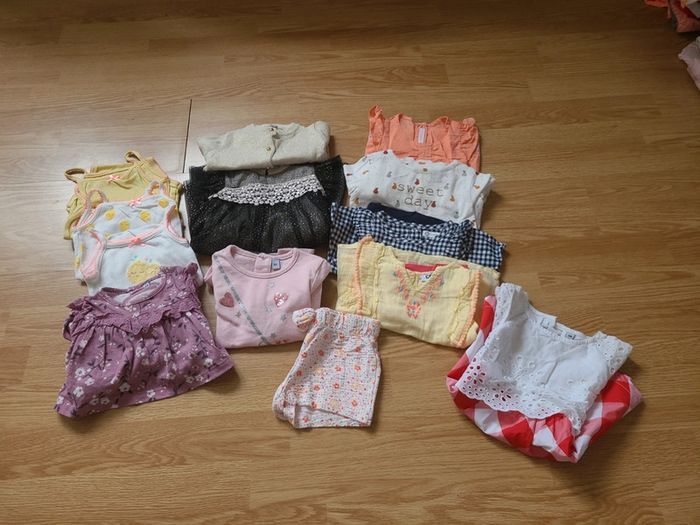 Bon état à très bon état (certains présentent des petites tâches voir photo) •3 body débardeur inextenso •1 robe marque inconnu •1 short marque Creeks •1 ensemble robe+gilet festif sans marque •1 robe orange broderie gemo •1 ensemble kiabi •1 blouse sans manches Lulu Castagnette •1 blouse sans manches Creeks •2 legging gemo •2 ensembles legging et haut manches longues marque U Prix négociable dans la limite du raisonnable #gemo #fille #6mois #lulucastagnette #kiabi #inextenso