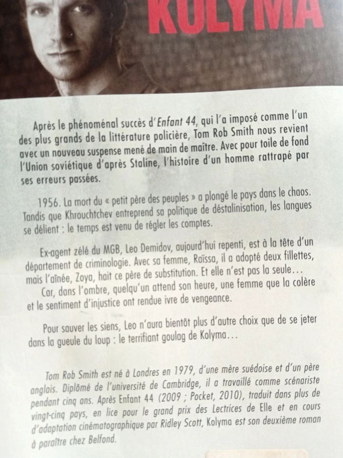 Kolyma Tom Rob Smith Éditions Belfond noir 405 pages Prix d'achat 22 € #lily2905jeuxjouetslivresbd #lily2905loisirsjeuxjouetslivresbd
