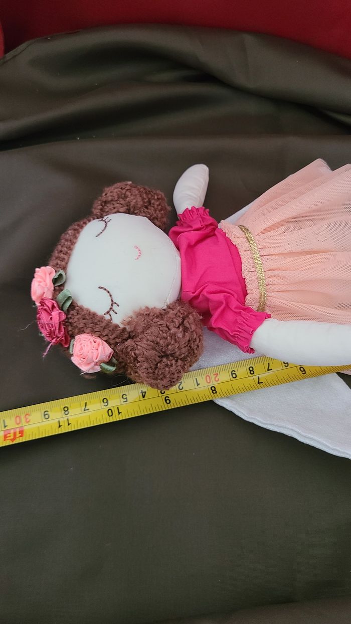 DOUDOU PELUCHE POUPÉE ROSE BRUNE COURONNE DE FLEUR AILES SERGENT MAJOR - photo numéro 4