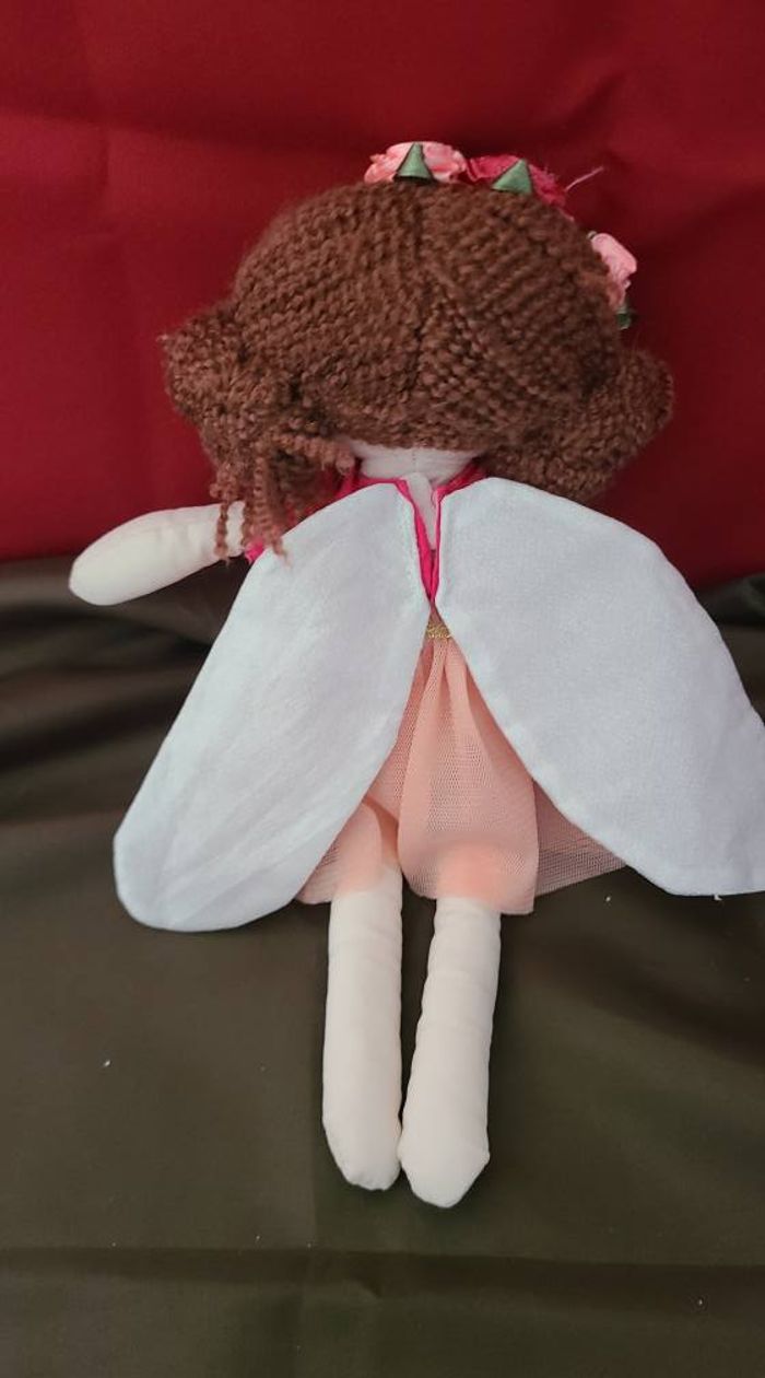 DOUDOU PELUCHE POUPÉE ROSE BRUNE COURONNE DE FLEUR AILES SERGENT MAJOR - photo numéro 3