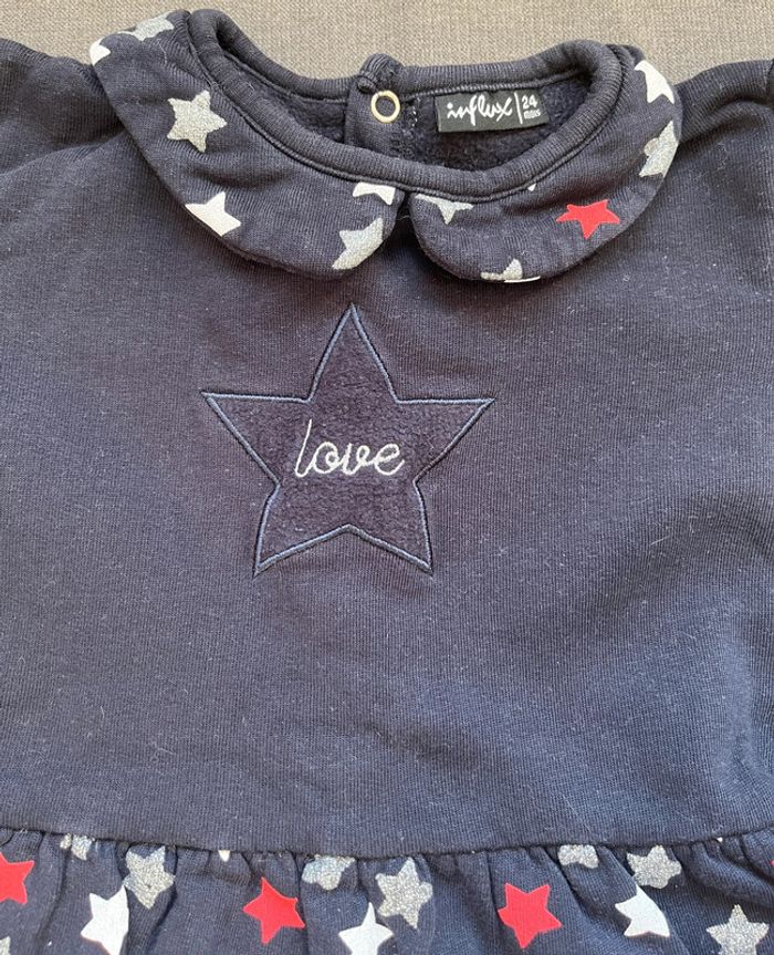 Robe pull taille 24 mois en très bon état. Motifs étoiles, boutons pressions dans le dos #lucie190510bebefille24mois2ans