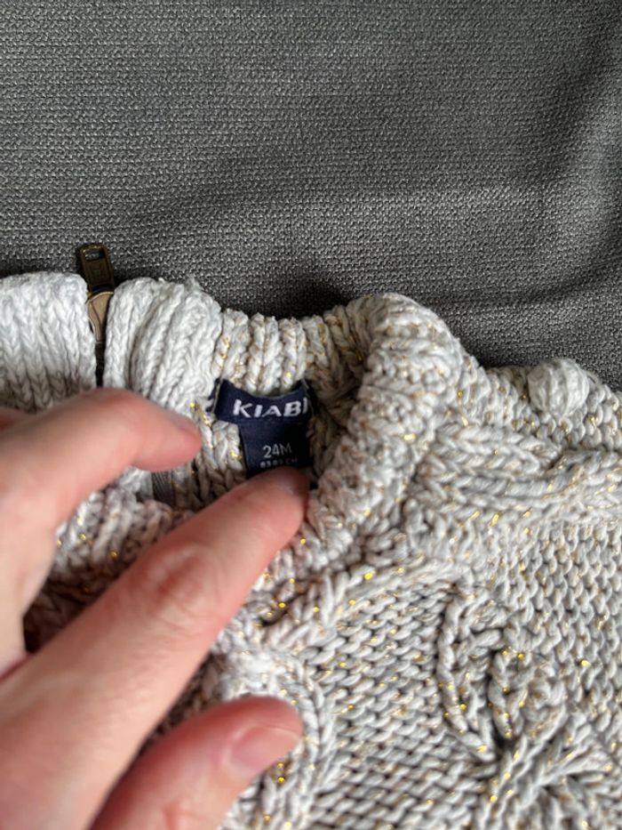 Robe pulls torsadé taille 24 mois marque Kiabi en très bon état. Couleur gris et doré pailleté, fermeture éclair dans le dos #lucie190510bebefille24mois2ans