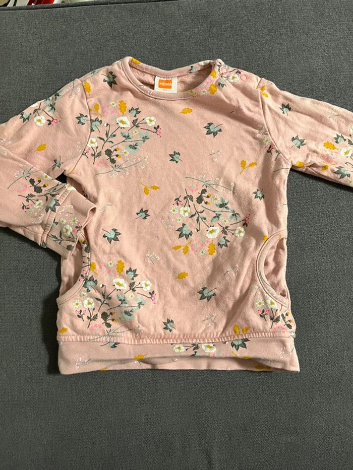 Pull rose fleuri de marque Hema taille 86 cms en très bon état #lucie190510bebefille24mois2ans