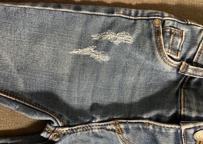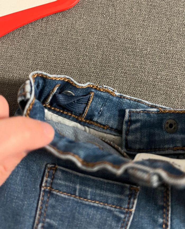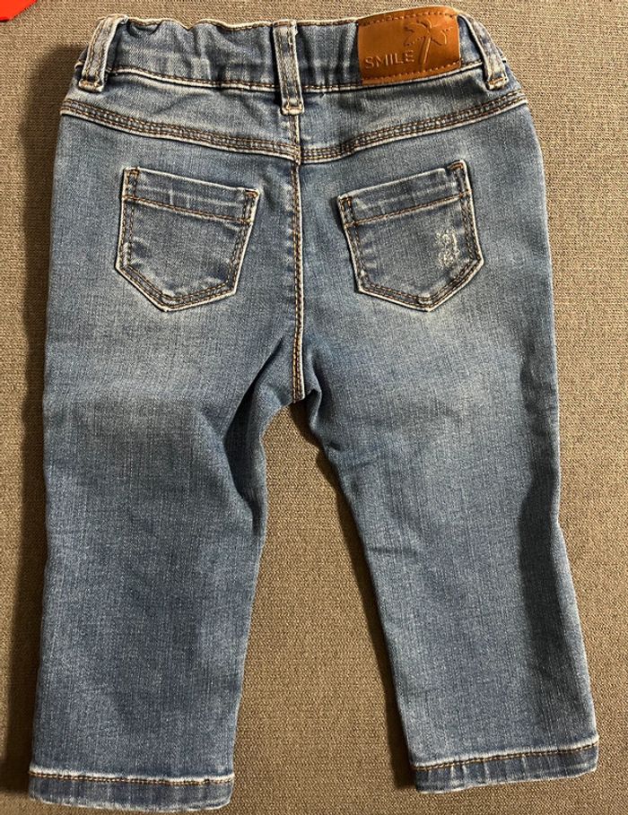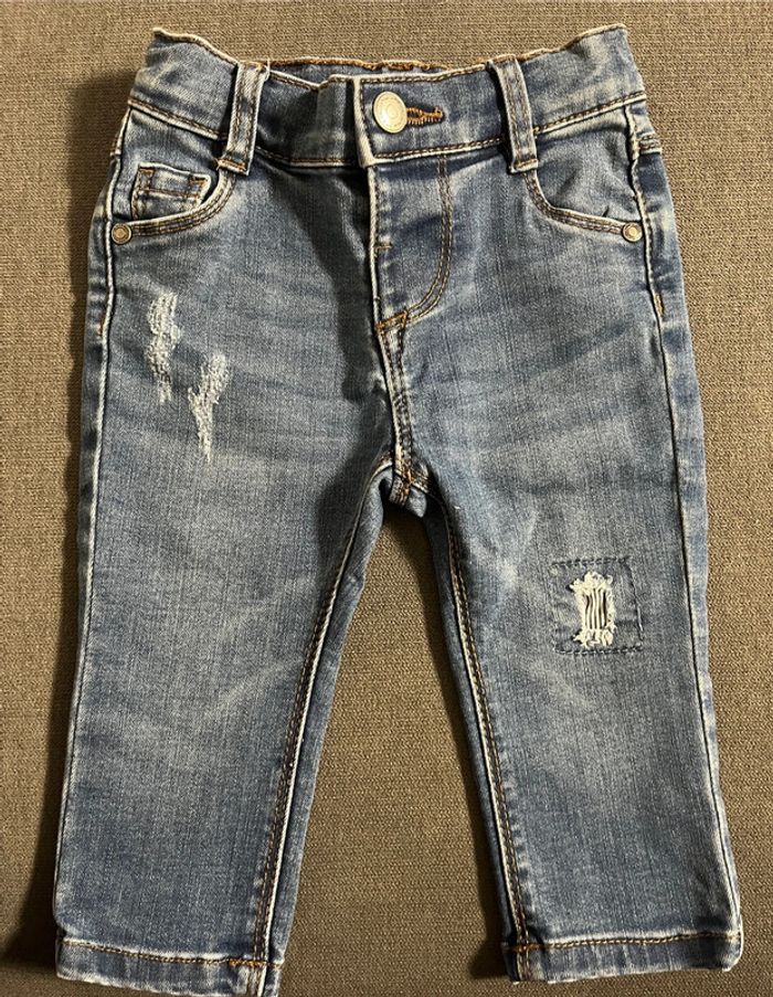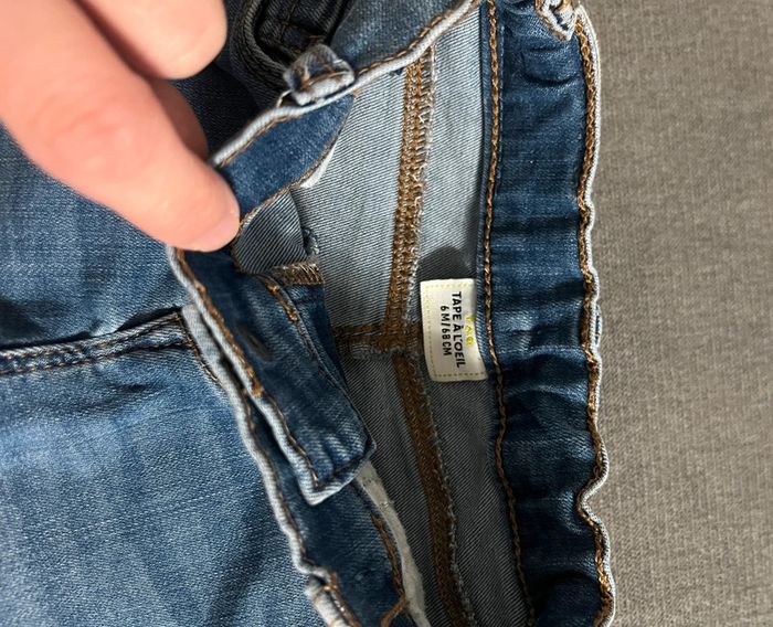 Jean tape à l’œil taille 6 mois en parfait état. Effets déchirés à plusieurs endroits (voir photos). Boutons pour ajuster la taille #lucie190510bebegarcon6mois #lucie190510bebefille6mois #lucie190510bebemixte6mois