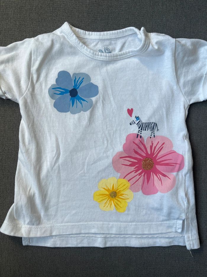 Teeshirt motifs fleurs et zèbre 6 mois - photo numéro 1