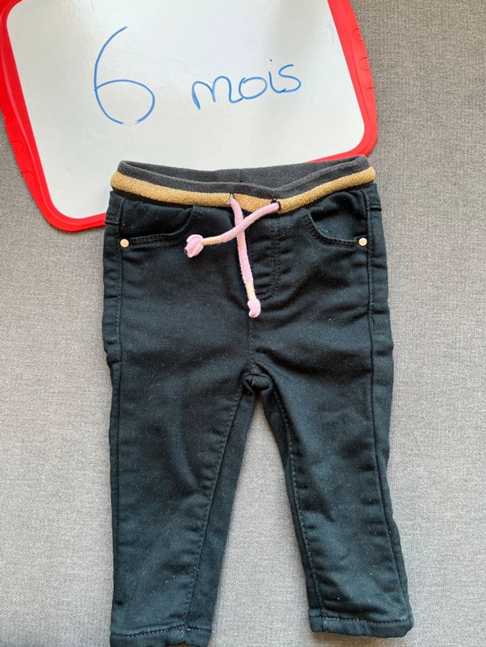 Jean noir orchestra taille 6 mois en très bon état. Ceinture dore avec lien rose, flocage love à l’arrière #lucie190510bebefille6mois