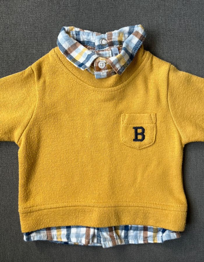 Pull léger avec chemise intégrée en parfait état taille 3 mois. #lucie190510bebegarcon3mois