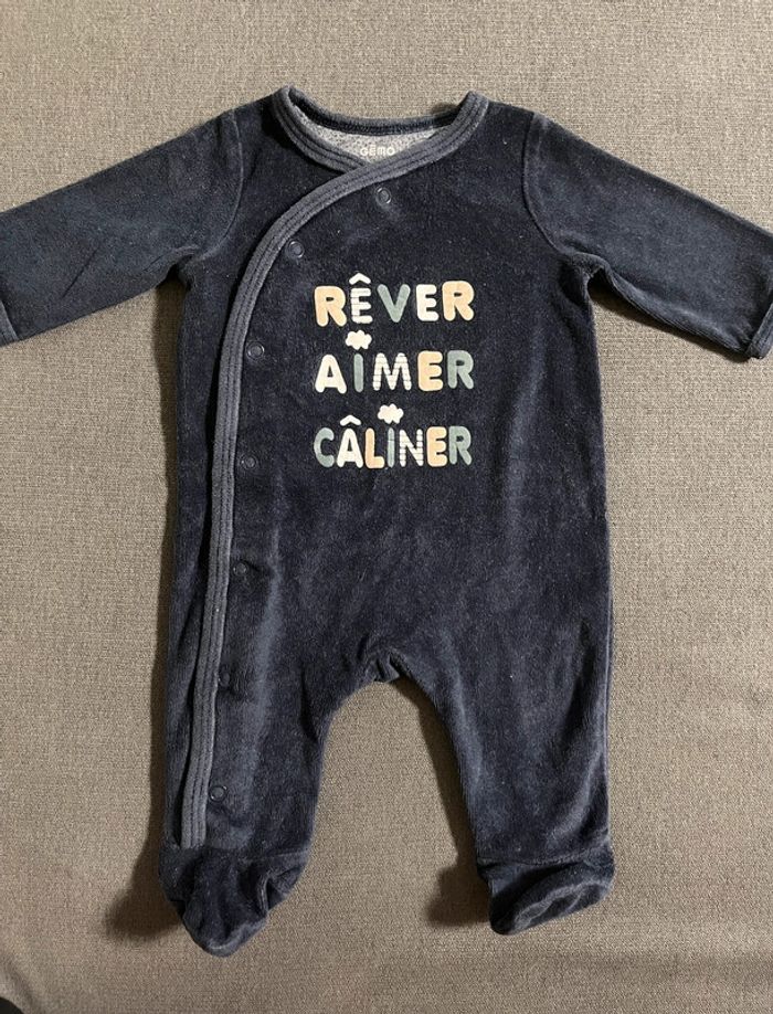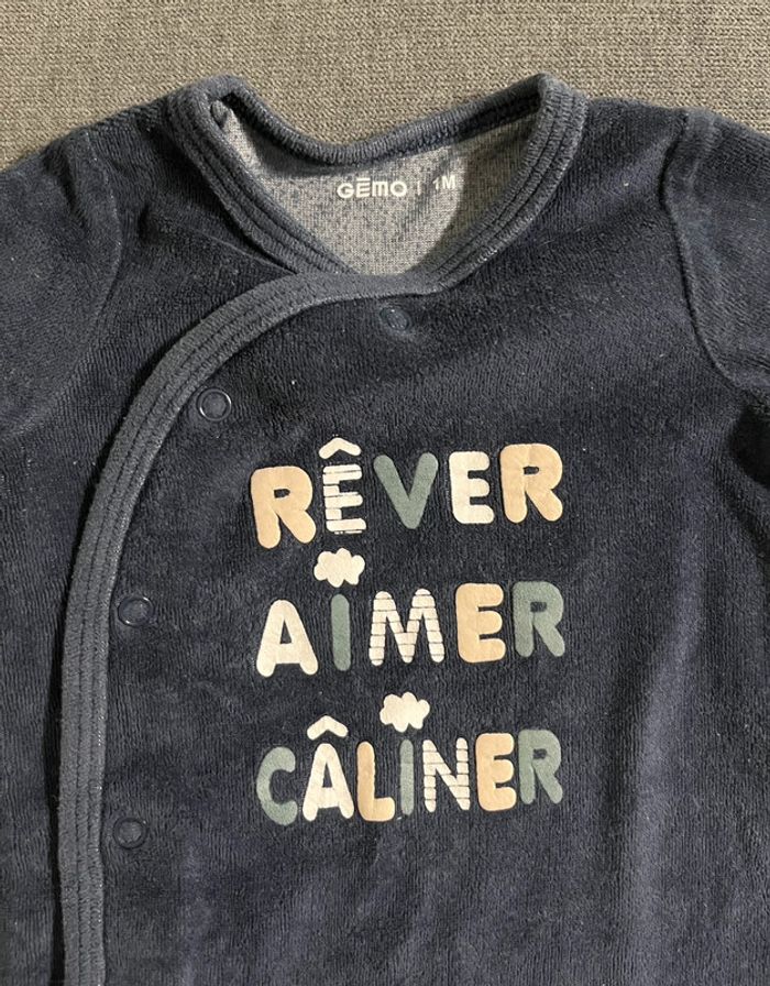Pyjama velours de marque Gemo « rêver aimer câliner » taille 1 mois en parfait état. Ouverture sur le devant #lucie190510bebegarcon1mois