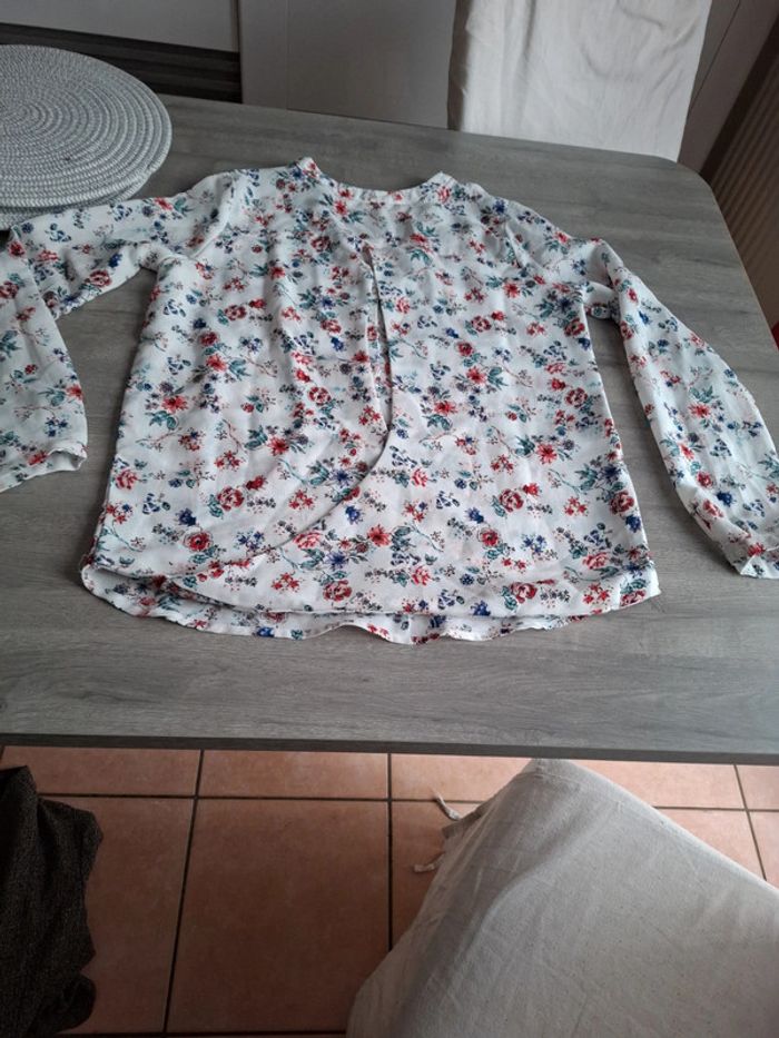 Chemisier à fleur que l'on peu mettre manche longue ou courte ouvert dans le dos enlever l'étiquette mais c'est un taille 36